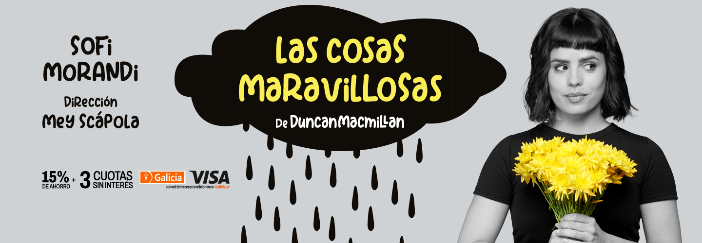 «Las cosas maravillosas» se estrenó en 2022 con Peter Lanzani como narrador de la primera versión argentina bajo la dirección de Dalia Elnecavé. Rápidamente se agotaron todas las entradas de todas las presentaciones y se convirtió en un suceso. Luego continuó el éxito con las versiones de Lali González, Franco Masini, Andy Kusnetzoff, Cande Vetrano, Victorio D’Alessandro, Florencia Otero, Natalie Pérez, Fer Dente y Juan Pablo Geretto, siempre bajo la dirección de Mey Scápola.