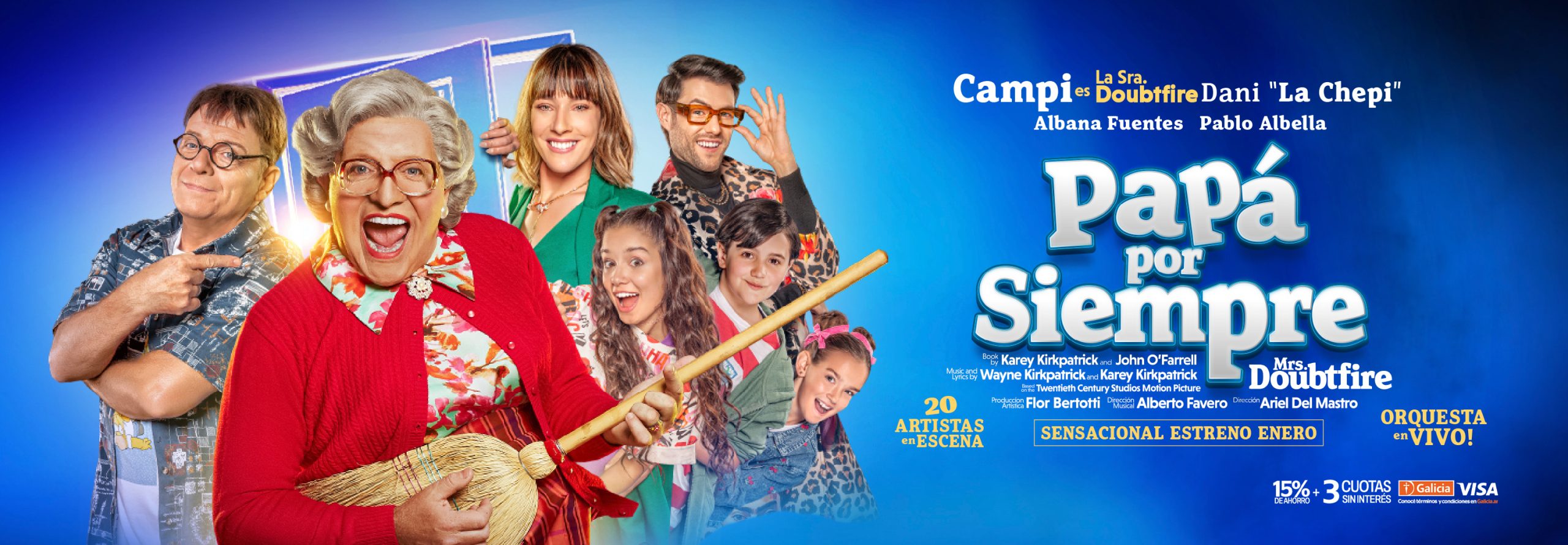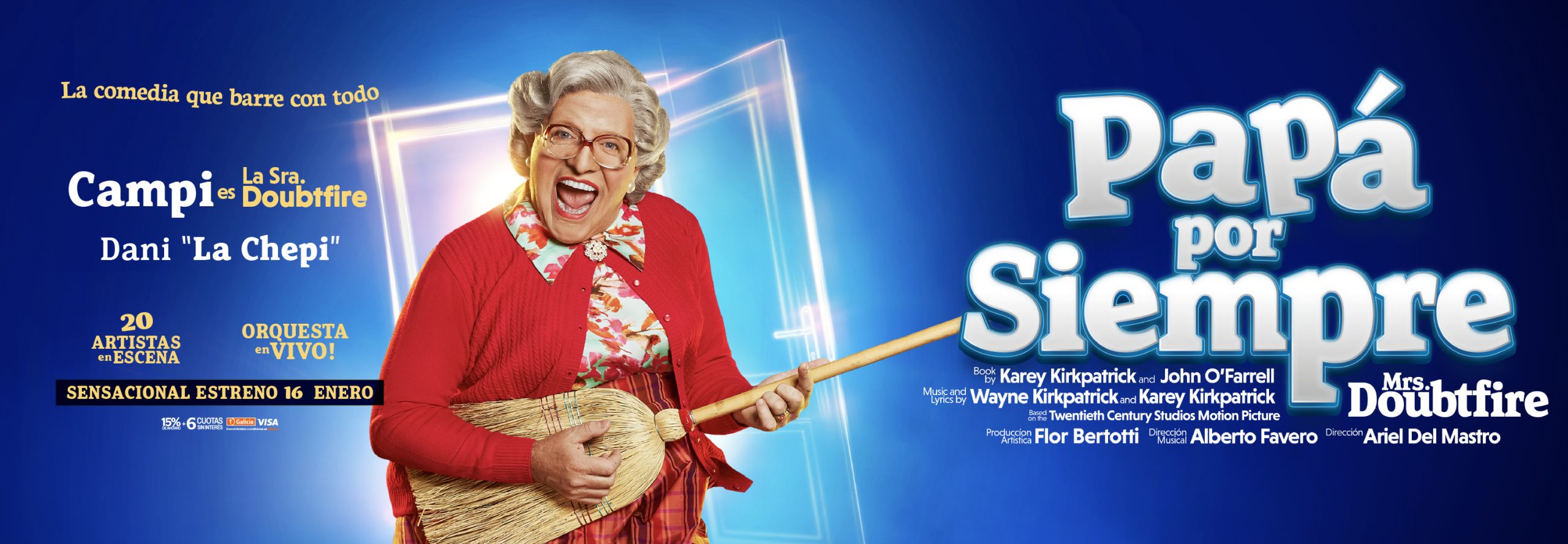 El personaje que conquistó al público en los años 90 vuelve a la escena, esta vez sobre el escenario del Teatro Liceo. «Papá por siempre», versión teatral de la icónica película Mrs. Doubtfire.